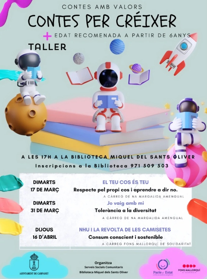 Organitza: Serveis Socials Comunitaris i Biblioteca Miquel dels Sants Oliver – Ajuntament de Campanet.