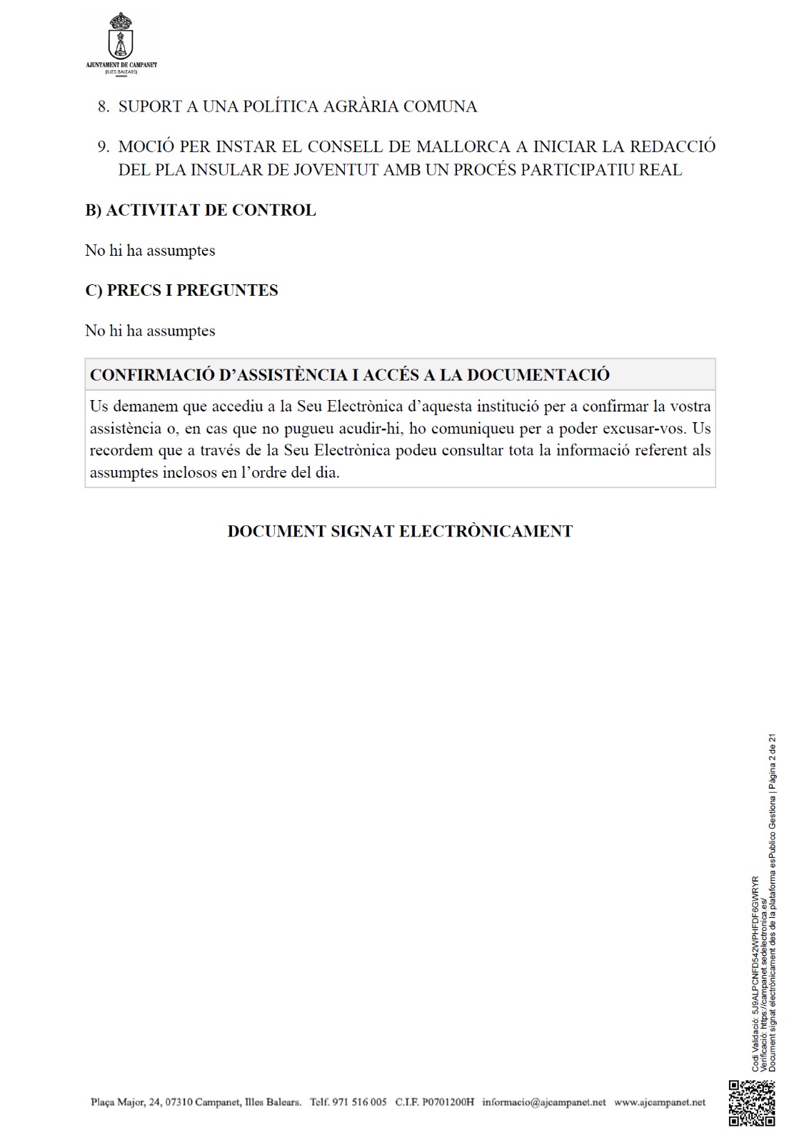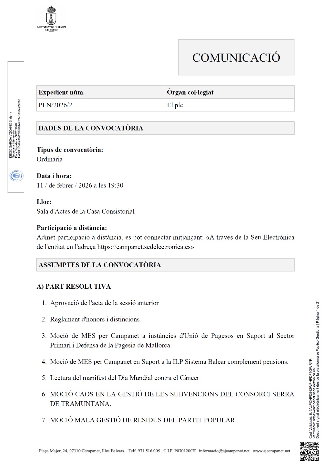 convocatoria ple ordinari