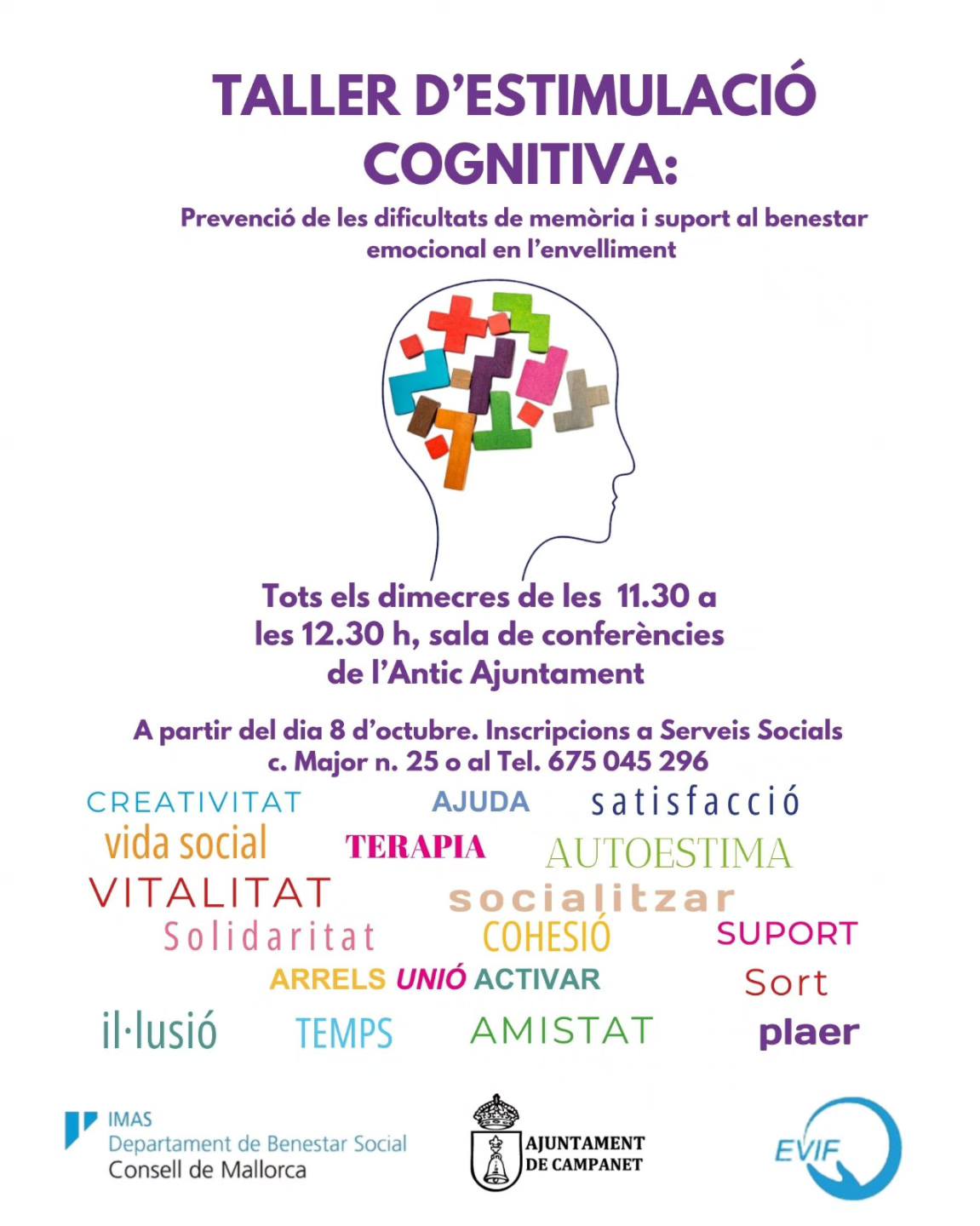 Per a inscripcions o més informació us podeu adreçar als Serveis Socials de Campanet, 675 04 52 96.