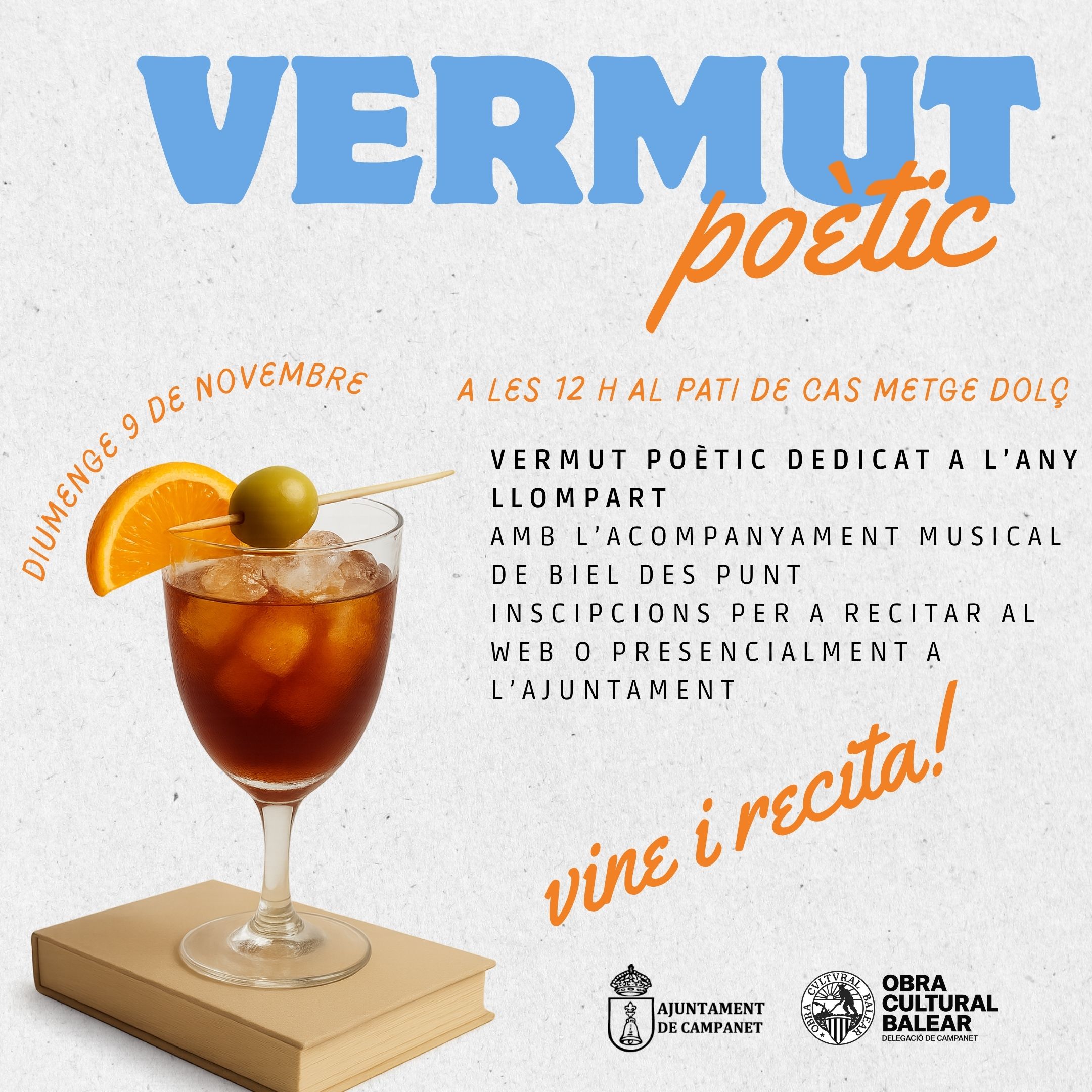 Participa recitant poesia, literatura o creacions pròpies al vermut poètic organitzat per l’Obra Cultural Balear de Campanet i l’Ajuntament de Campanet.