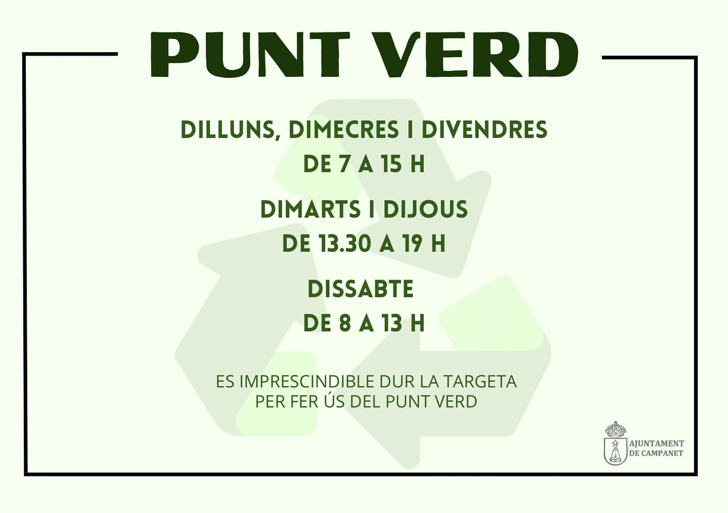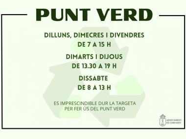 El Punt Verd ha recuperat el seu horari habitual