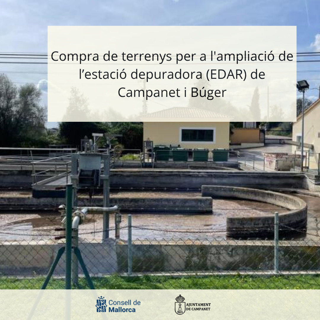 • Compra de terrenys per a l'ampliació de l’estació depuradora (EDAR) de Campanet i Búger.