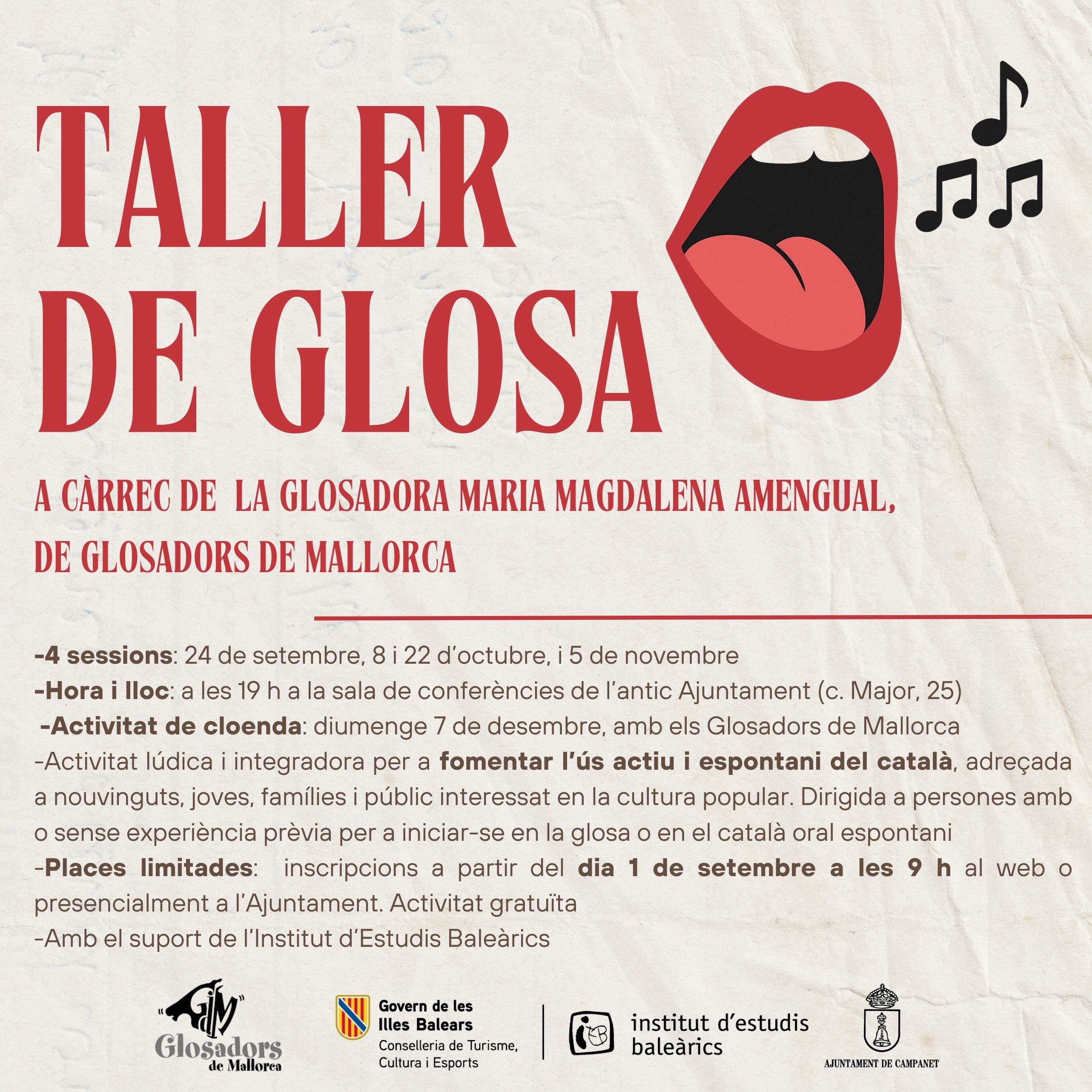 TALLER DE GLOSA, a càrrec de la glosadora Maria Magdalena Amengual, de Glosadors de Mallorca.