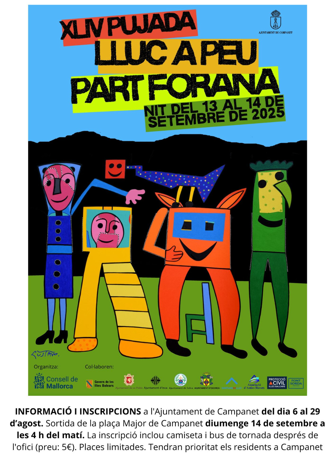 INFORMACIÓ I INSCRIPCIONS a l'Ajuntament de Campanet del dia 6 al 29 d’agost